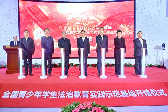 2023年11月29日,全國青少年學生法治教育實踐示范基地暨最高人民檢察院未成年人法治教育實踐基地開館儀式在北京外國語大學國際會議中心舉行。最高人民檢察院黨組書記、檢察長應勇,教育部黨組書記、部長懷進鵬,司法部黨組成員、副部長左力,北京市委常委、組織部部長、教育工委書記游鈞出席活動并講話。