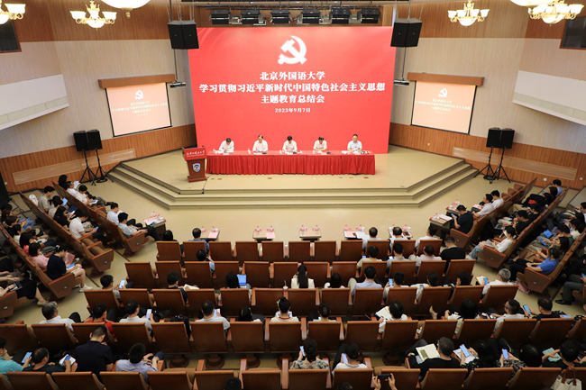 2023年9月7日,北京外國語大學(xué)學(xué)習(xí)貫徹習(xí)近平新時(shí)代中國特色社會(huì)主義思想主題教育總結(jié)會(huì)在阿語樓國際會(huì)議廳舉行。