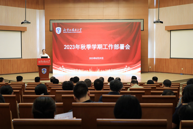 2023年8月29日,北京外國語大學2023年秋季學期工作部署會在阿語樓國際會議廳舉行。