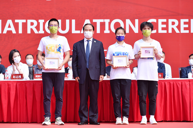 本科新生代表日語學院日語專業李子樂號召同學們以全新的面貌開啟人生新旅程,希望和同學們攜手奮進,做有理想、有本領、有擔當的北外人。英語學院英語筆譯專業政治文獻翻譯方向首屆新生、研究生新生代表李澤暉同學倡導同學們要“游于語言,依于北外,據于中國,志于世界”,將紅色基因不斷傳承,在偉大事業中綻放光彩。留學生代表、中國語言文學學院博士生、來自白俄羅斯的格里沙耶娃(Hryshayeva Katsiaryna)希望努力踐行“兼容并蓄、博學篤行”的校訓精神,成為有真才實學的北外人,為增進中白友誼貢獻自己的力量,希望和同學們一起為人類命運共同體建設做出更多貢獻。