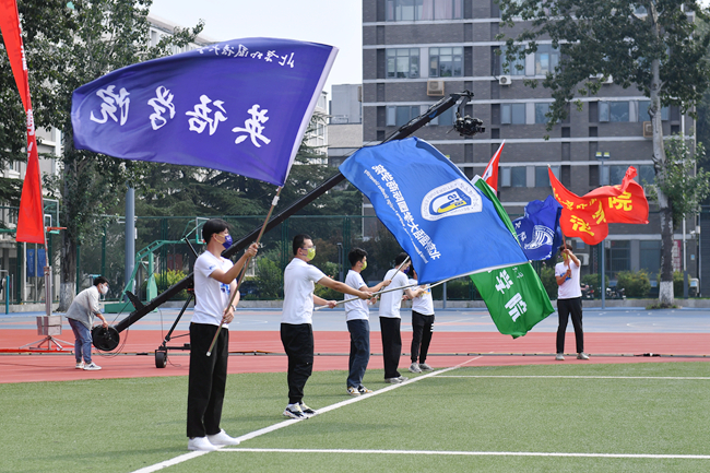 最后,校旗和各院院旗共同揮舞,開學典禮在一段精彩的快閃中、在學生自己創作的歌曲中落下帷幕。