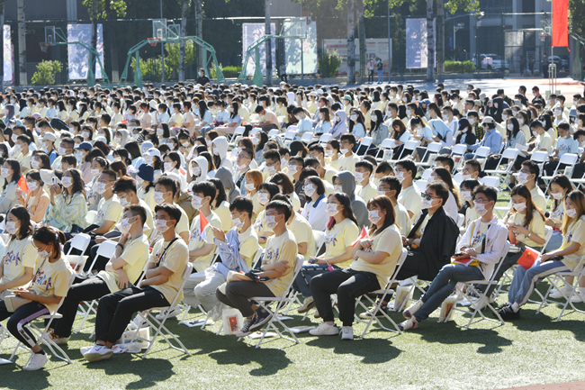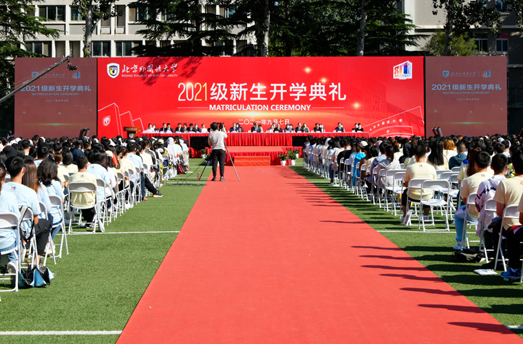 在校慶80周年到來之際,北京外國語大學迎來了又一批朝氣蓬勃、滿懷理想的青年學子。9月7日,北京外國語大學2021級新生開學典禮在東校區體育場隆重舉行。3400名本科生、研究生、博士生以及留學生開啟全新的大學生活。